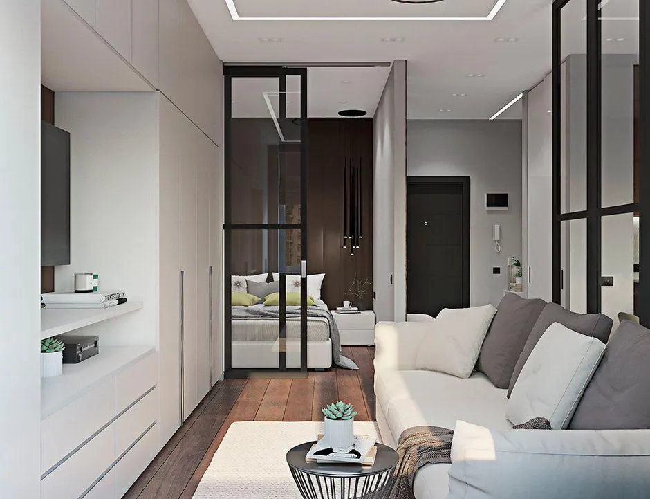 - Запорука зручності маленької квартири – приховані місця для зберігання. Використовуйте антресолі, меблі до стелі, зберігання в дивані й ліжку та ін.