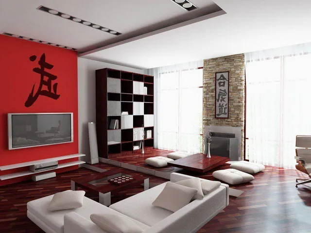 У японському стилі півтони не вітаються – досить одного чистого кольору з натуральними фактурами дерева, каменю або бамбука. Для акценту використовується червоний колір.